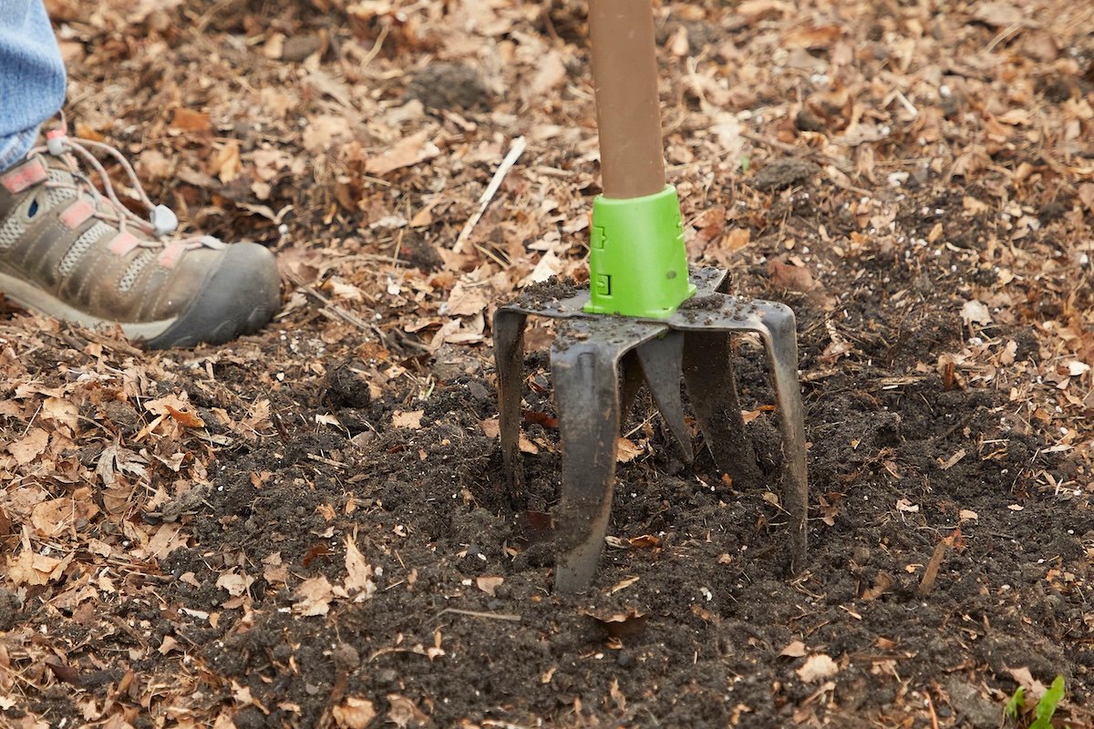 You probably have a tilling tool on hand, such as a rake to loosen shallow soil. A BroadforkUsually consisting of a horizontal metal bar and three to five tines on two handles, it is one of our favorite tools to use when aerating the soil without breaking up the fine material. When you step on the flat metal bar of the fork, it pushes the tines into the ground and gently rocks the soil to loosen it. It’s a great way to maintain the health of an established garden soil, and it’s also good exercise.