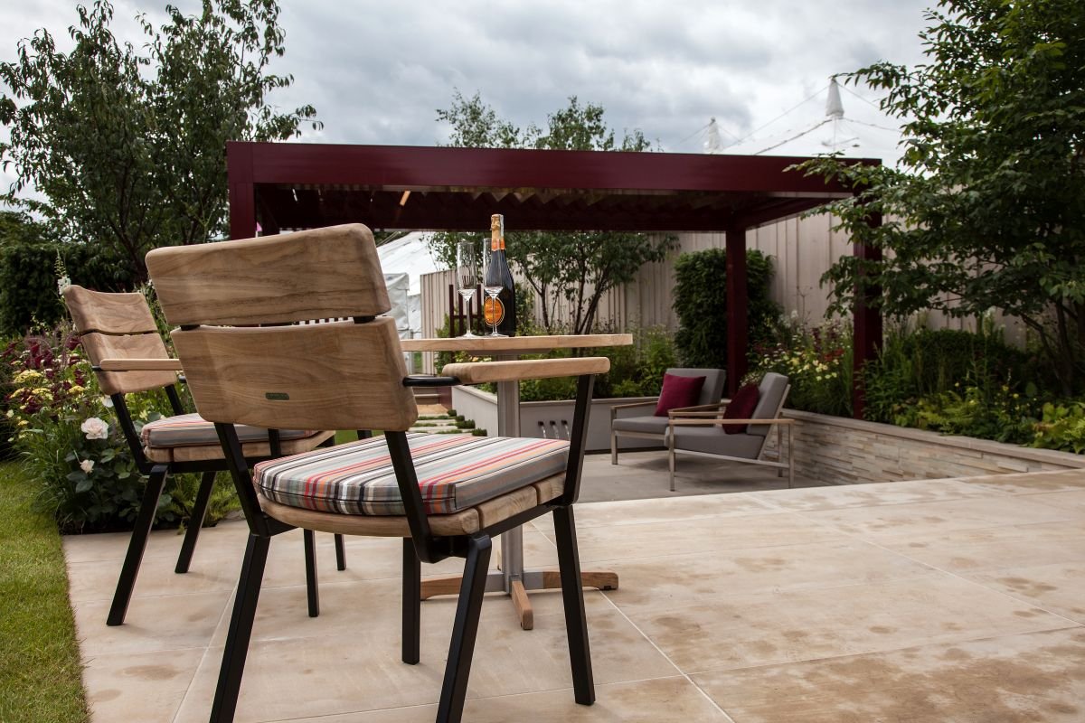 Simple furniture allows the surrounding planting to dominate. Tables and chairs become part of the garden rather than competing with it.