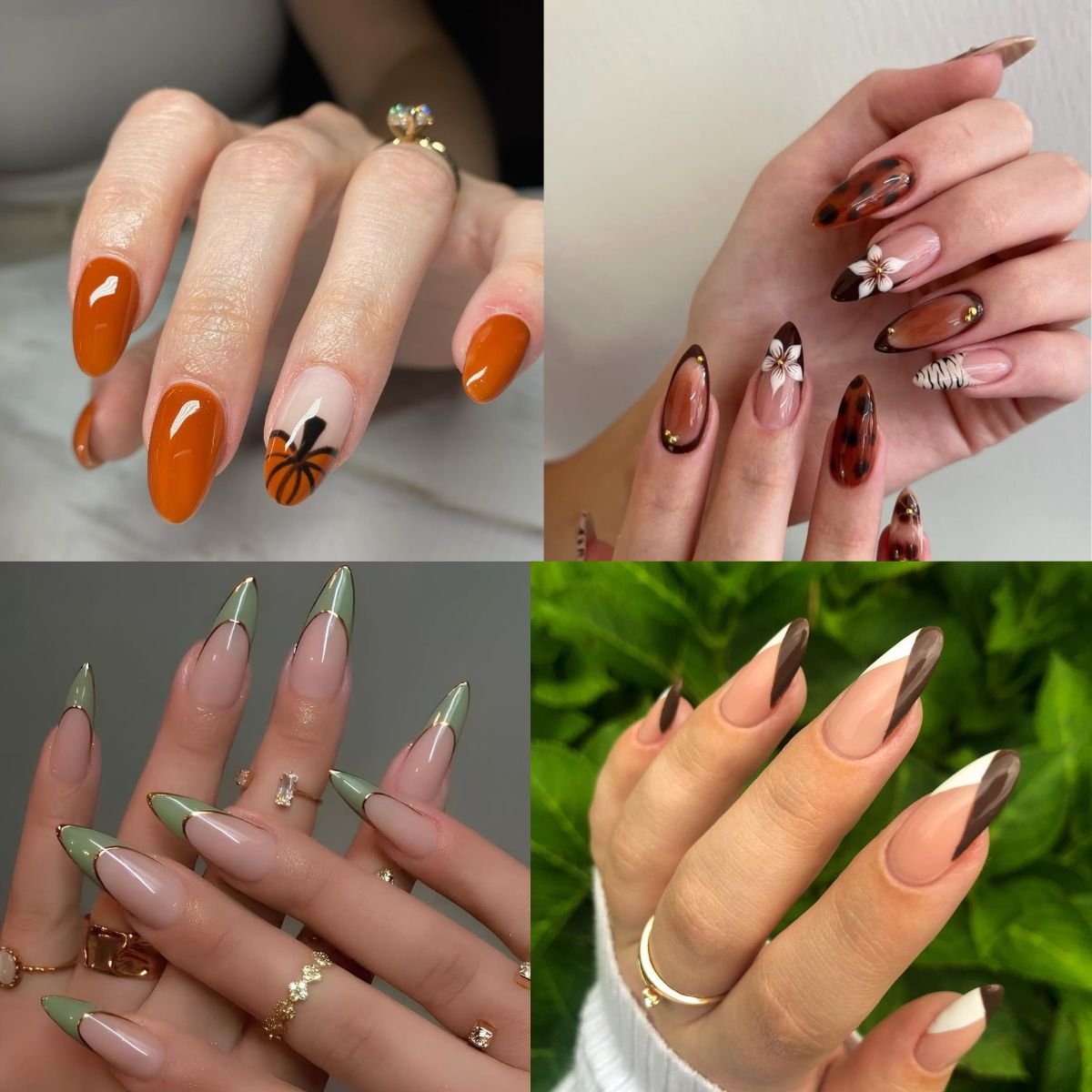 From white to nude, orange and brown, this has so many good fall shades. If you’re looking for a festive yet super chic fall manicure, you can’t go wrong by recreating this one.