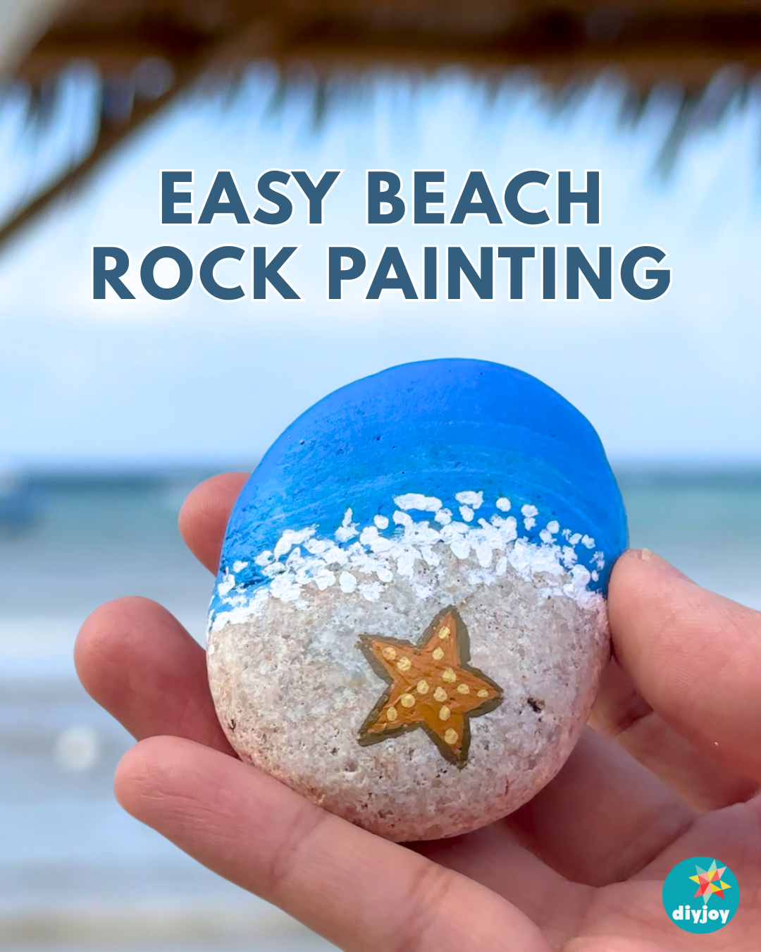 Beach rock paintings are perhaps one of the most famous rock painting ideas you can find online. They are easy to draw and are completely beginner-friendly. Unlike other themes, they only require a limited color palette and basic composition, making them perfect for beginners who are just starting to learn to paint.