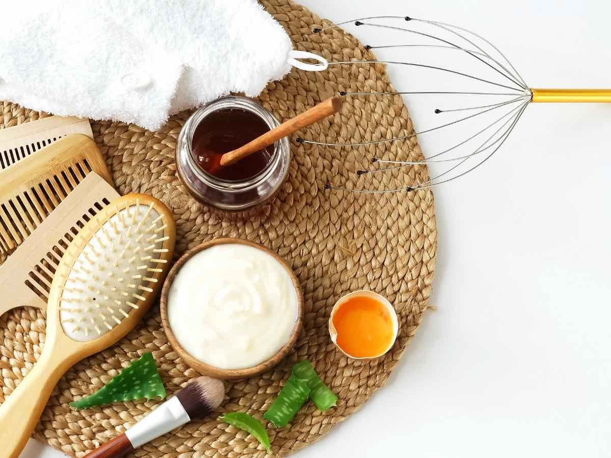DIY hair mask ingredients and hair toolsDIY hair mask ingredients and hair tools