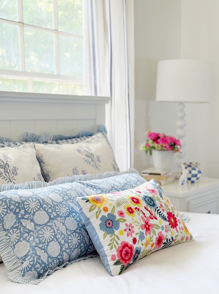 Looking for blue and white cottage bedroom decorating ideas? Here’s a mini bedroom refresh with the cutest block print pattern.