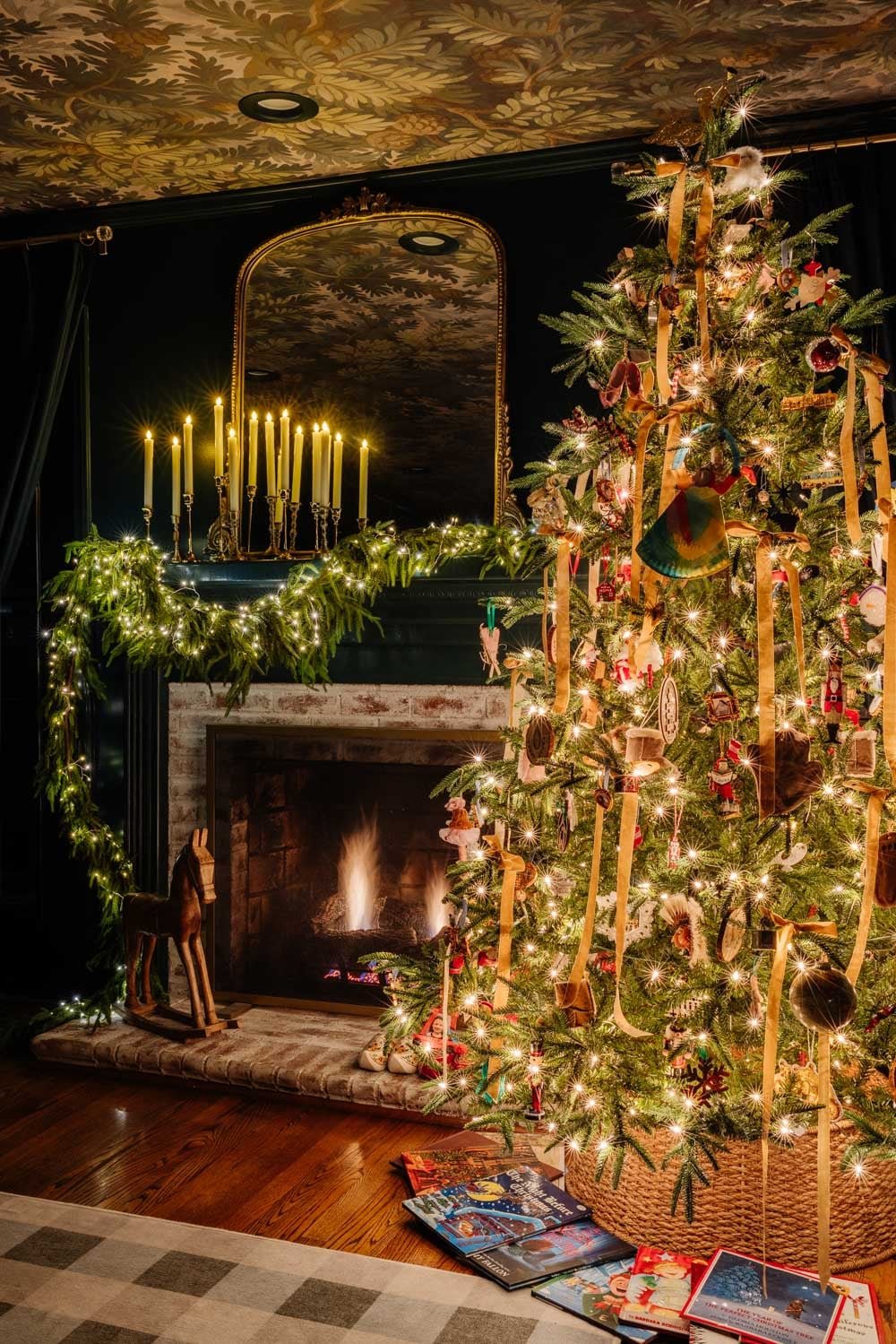 And under the tree, you’ll usually find Christmas storybooks strewn about, ready for cozy evenings reading together with our girls. This room is all about tradition, memory and making room for moments that feel slow and meaningful.