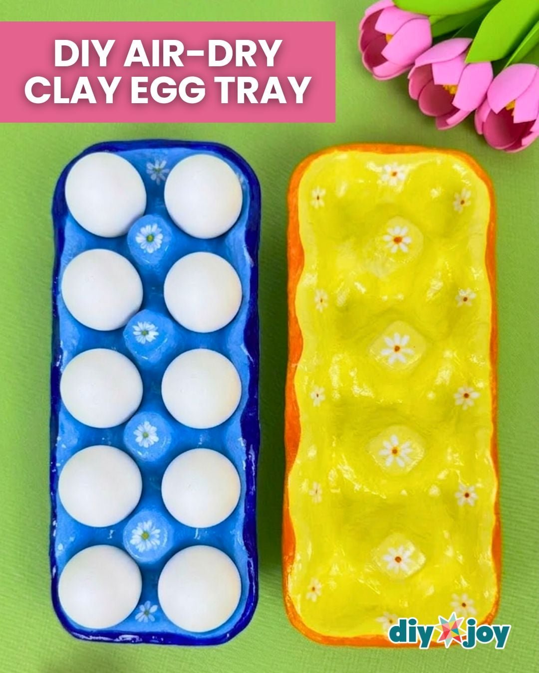 And the best part? This project is beginner-friendly, requires minimal materials, and can even incorporate recycled elements for a more sustainable approach. In the end, you’ll have a unique air-dry clay egg tray that’s practical, beautiful, and all your own. This is a project that combines creativity, functionality and a little spring fun.