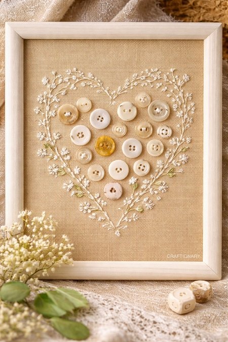 This framed embroidery button art is a great example of how simple materials can create something elegant and timeless. The combination of delicate stitching and unique buttons makes each piece one of a kind.