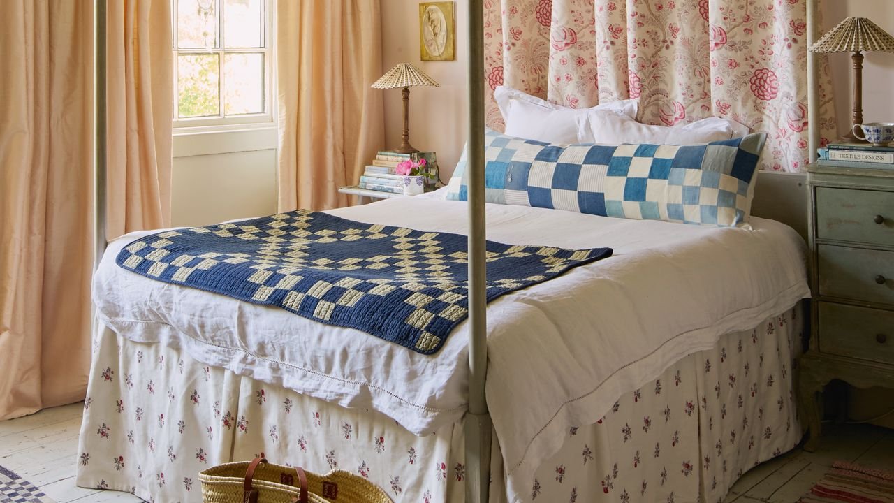 ‘The guest annexe at my house in Suffolk only has room for a bed, but one way to make a room like this look bigger is to opt for a compact four-poster. It gives a sense of grandeur and makes the room feel larger.’ – Veer Granny