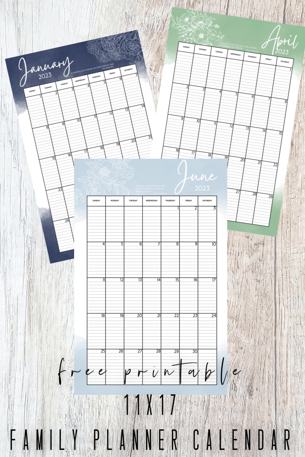 Get organized with this free printable 2023 family planner calendar in the 11×17 size or the plain version at 8.5×11.