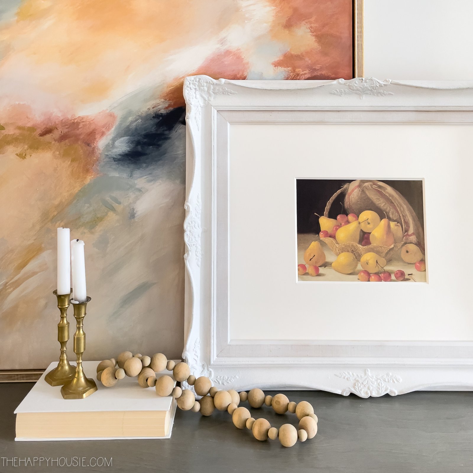Doesn’t this little vignette feel happy and cozy? Also, having pictures of fruit around can direct our attention to the healthy foods we’re all trying to eat in January 😉