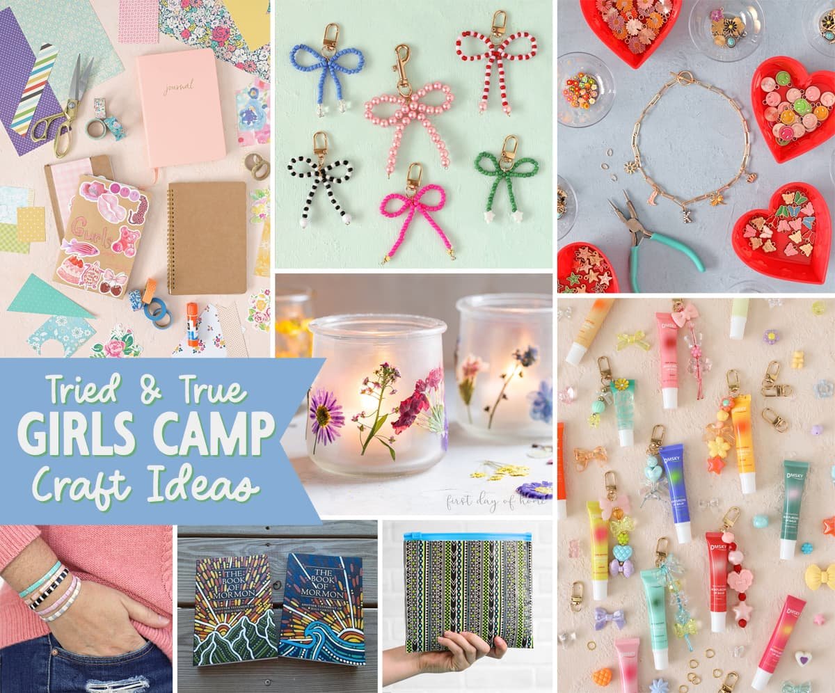 I have been a leader in our church’s young women’s program Many years at this point. I love teenagers! Having attended more girls’ camps as a teenager than I ever did, I have a good idea of what kinds of crafts will go well with girls and work successfully while camping on a church camp budget. I thought I’d share a bunch of craft ideas that would be perfect at girls’ camp. If you are planning a camp, hope you find this list helpful.