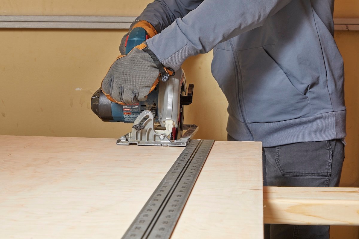 If you want to make a A straight, accurate cut with a circular saw, You need to use a fence. Rhodes advises using a fence unless you are making a rough cut. “The worst cuts aren’t because the saw lacks power,” he says. “That’s because the wood wraps before the blade touches the wood, the sheet moves, or the setup stops.” You can purchase an aftermarket cutting guide or make your own quick guide: