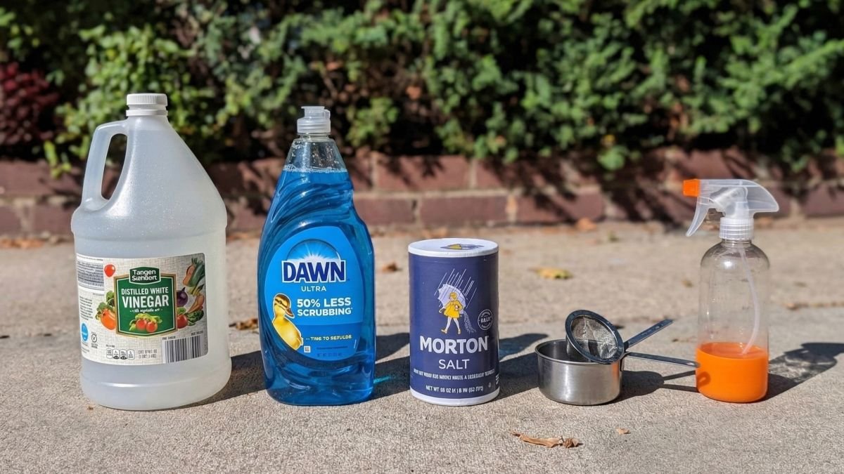 - Vinegar + salt + dish detergent