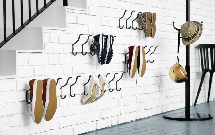 shelter Shows us a clever way to use Ikea’s ‘Cartotec’ hooks. They keep changing the design so don’t be surprised if they look a little different now, but the fact is that these hooks are perfect for this shoe organizer Ikea hack.