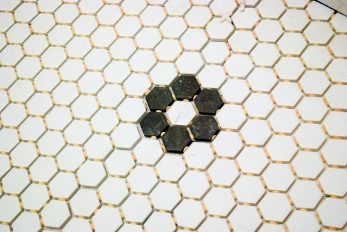 Along these same lines, learn the terms. Thinset is what you use to “glue” the tiles. Grout is what you use to fill gaps. Should you use sanded or unsanded grout? Use the correct size and type of “trowel” for the tiles you are laying to spread your thin layer. Read and follow the directions. If the Thinset needs to be set up in 10 minutes, do it. If using 1″ hex, use the recommended trowel to avoid the thin layer leaking between the tiles. It’s no fun carving it out with a toothpick. Buy the huge yellow sponge to mop up the grout (according to the correct amount of time to allow it to harden). Buy a rubber “float” to force the grout into the joints. Learn to use “tweezers” – just be patient and pinch a little at a time. There should be a manual “turner” for tiles. Practice. (Sorry, there’s probably a more professional term for this.) A decent wet saw is about 25.00 at the big box stores and easy to learn to use. Expect to get wet, but this is essential for making clean cuts. Buy spacers of the right size. None of these tools cost much. I could go on, but the bottom line is that you will need “equipment” to do a professional looking job.