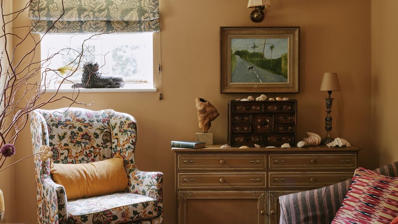 In the room below Sophie Warburton’s London home Perhaps the most common layout is the terraced house, with a bay window at the front, a fireplace in the middle and a long, narrow space between. Sophie’s approach to it is classic: a sofa against one wall, an ottoman in the middle, and an armchair near the door and both in the corner. Shelves on either side of the fireplace make an obvious place to keep the television.