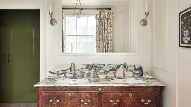 Deco bathroom mirror A modern take on John Lewis’ art deco, this…