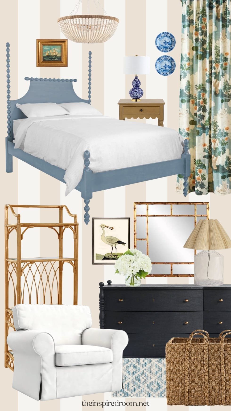 I recently shared mine Revealing the bedroom makeoverSo today I wanted to share a “get the look” mood board with similar elements, including the colors for our painted striped walls.