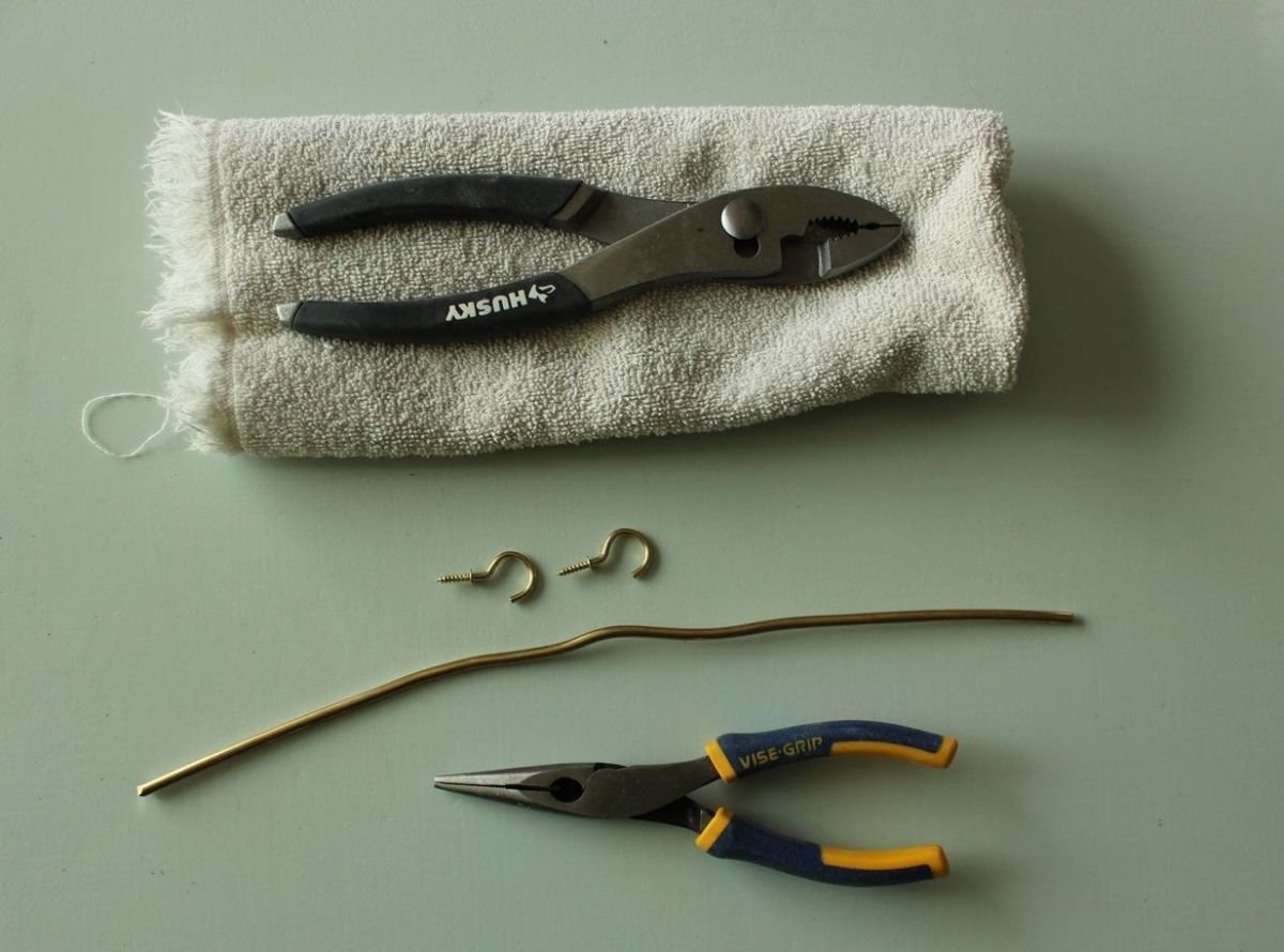 • Shape the ends of the wire – Using pliers and cloth to protect the surface, bend both ends of the brass wire into small loops. These loops will sit on the hooks.